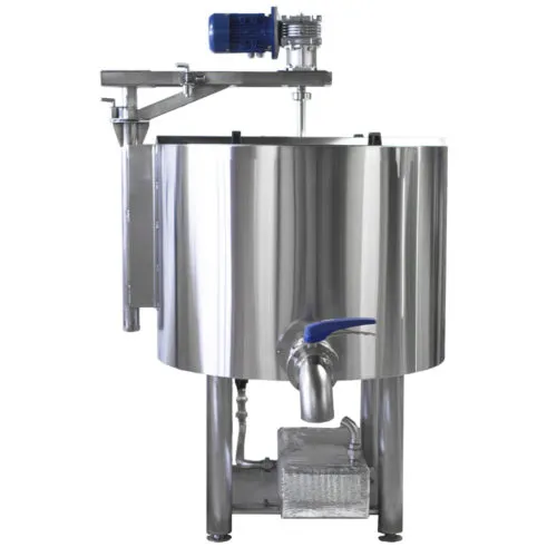 Предназначена для тепловой обработки молока с целью производства сыров, творога, кисломолочных продуктов, питьевого молока. Ванна имеет 2 раздельные водяные рубашки нагрева и охлаждения, либо панельную с принудительной циркуляцией теплоносителя (на выбор) Технические характеристики: Рабочий объем ванны, л 400 Диаметр сливного отверстия, мм 80 Мощность ТЭН, кВт 30 (15+15) Металл водяной рубашки, мм 2 Металл обшивки, мм 1,5 Термоизоляция, мм 50 Скорость нагрева, °С /мин 1 Минимальное заполнение, % 30 Вся сыроварня(рабочая емкость, водяная рубашка, обшивка, опоры и т.д.) выполнена из AISI 304. Никакой черной и технической нерж. стали Перемешивающее устройство: Мешалка лопастного типа (быстросъемная) Мощность привода 0.55 кВт Частота оборотов 23 об/мин Габаритные размеры, мм Наружный диаметр 1100 Внутренний диаметр 960 Глубина емкости(дно наклонное) max 670 Габариты(ДхШхВ) 1480х1300х1680 Масса, кг, не более 300 Комплект поставки: 1. Ванна теплоизолированная с крышкой 1 шт. 2. Лира ручная вертикальная, шаг струн 20 мм 1 шт. 3. Затвор дисковый DN80 1 шт. 4. Датчик температуры 2 шт. 5. Датчик уровня воды в рубашке 1 шт. 6. Мотор-редуктор 1 шт. 7. Блок-ТЭН 2 шт. 8. Мешалка лопастного типа 1 шт. 9. Пульт управления с контроллером 1 шт. 10. Ключ для молочных гаек, шарнирный DN25-65, NIOB(Чехия) - 1 шт. Дополнительные опции: 1. Пульт управления "Нагрев- выдержка - охлаждение". 2. Пульт управления "Максимальная автоматизация" с программатором и логическим контроллером. 3. Реле времени. 4. Планетарная система резки/вымешивания. 5. Частотный преобразователь (Устройство для плавной регулировки частоты вращения мешалки, реверса). 6. Панельная рубашка нагрева/охлаждения с системой циркуляции теплоносителя (на выбор). 7. Нагрев от внешнего источника горячей воды (твердотопливный, газовый котел и др.).