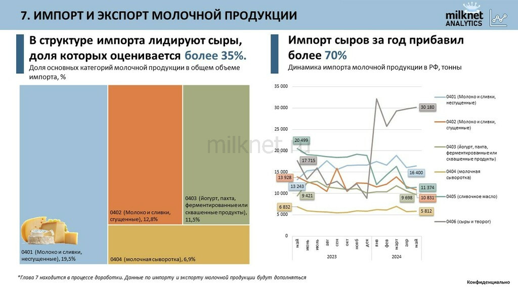 Информационно-аналитический отдел портала Milknet.ru представляет своим подписчикам ежемесячный аналитический отчет о молочной отрасли России по итогам мая 2024 года.