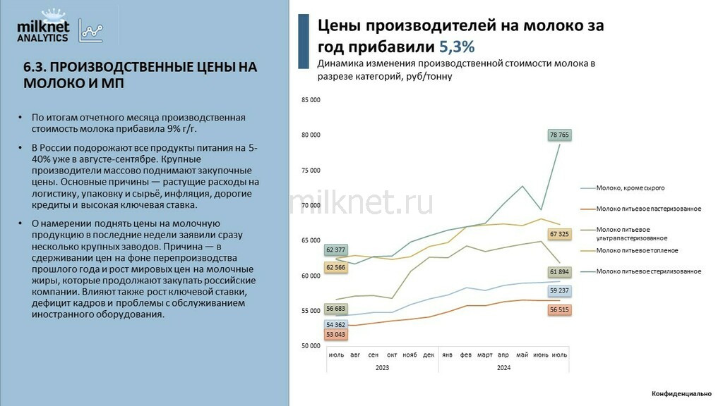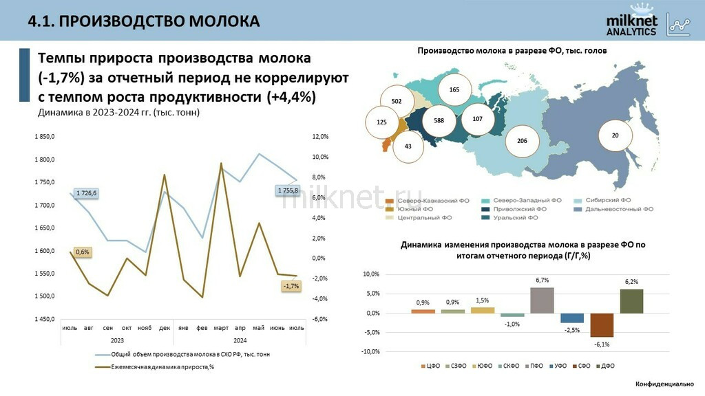 Информационно-аналитический отдел портала Milknet.ru представляет своим подписчикам ежемесячный аналитический отчет о молочной отрасли России по итогам июля 2024 года.