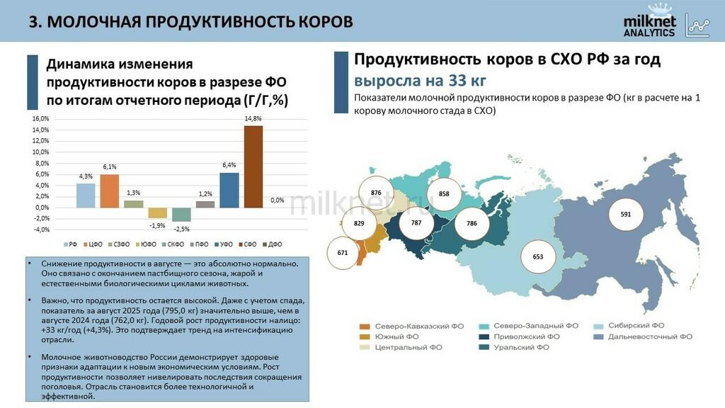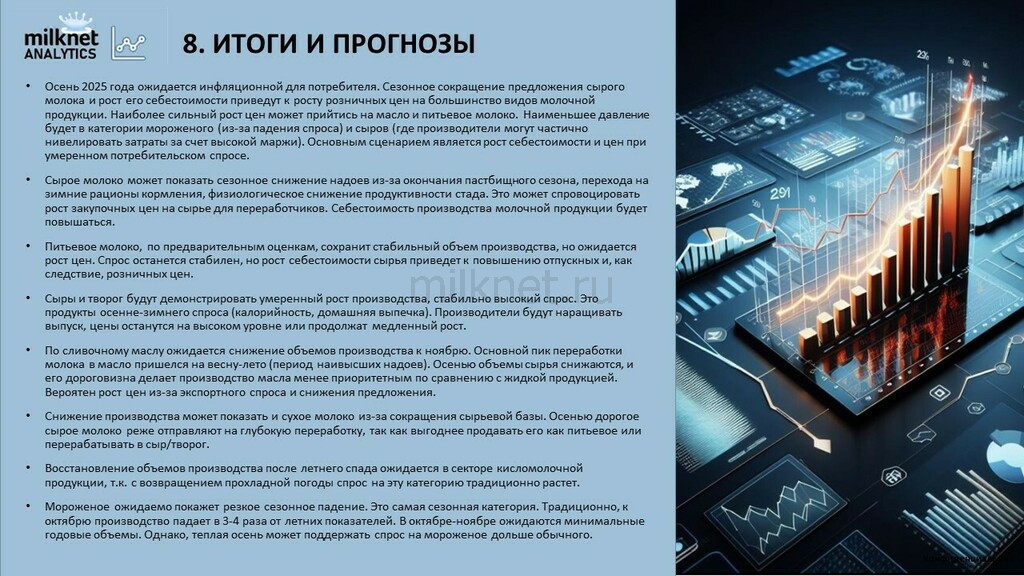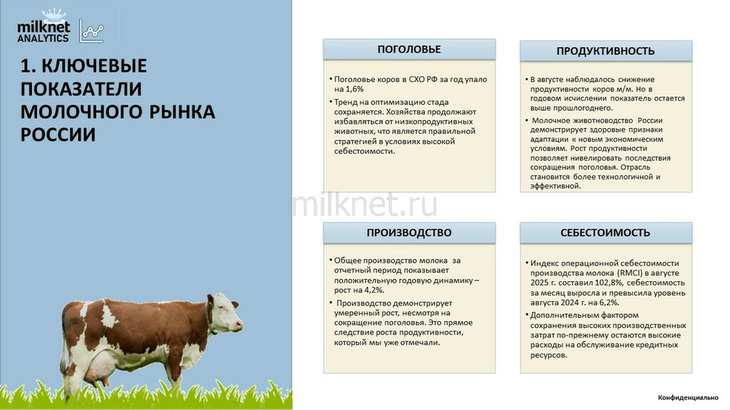 Информационно-аналитический отдел портала Milknet.ru представляет своим подписчикам 18-й ежемесячный аналитический отчет о молочной отрасли России по итогам августа 2025 года.