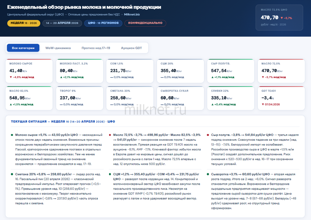 Еженедельные обзоры молочного рынка доступны в рамках подписки.