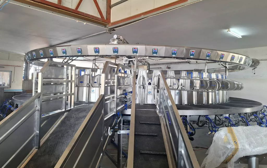 Ротационные доильные залы (карусель) предлагают чрезвычайно высокую производительность. Они идеально подходят для ферм с 800 головами животных и более. Размер доильного зала начинается с 24 и доходит до 120 мест, а их производительность составляет до 1600 животных в час. Для работы требуется всего 2-3 человека.